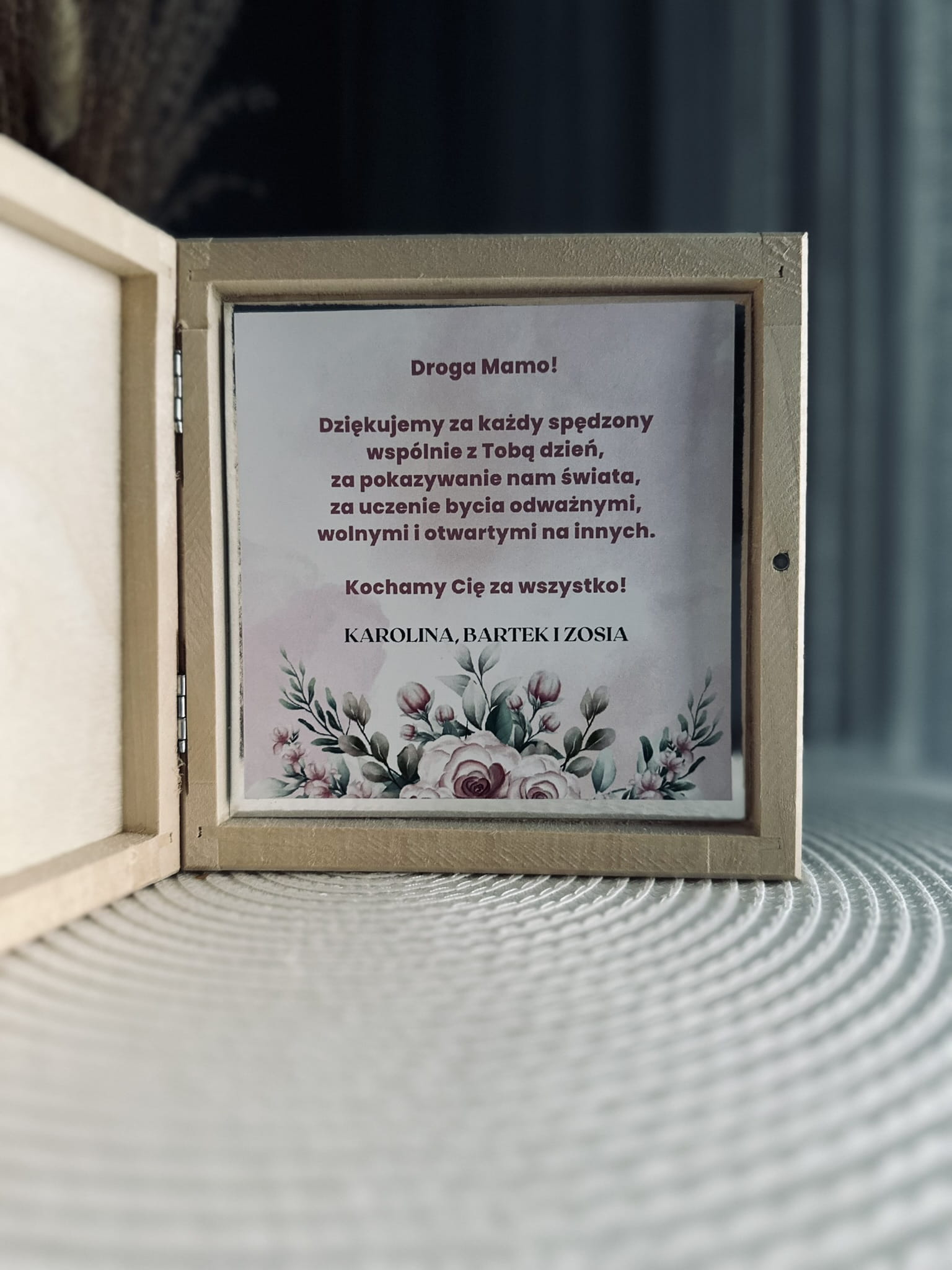 Drewniane pudełko z życzeniami dla Mamy