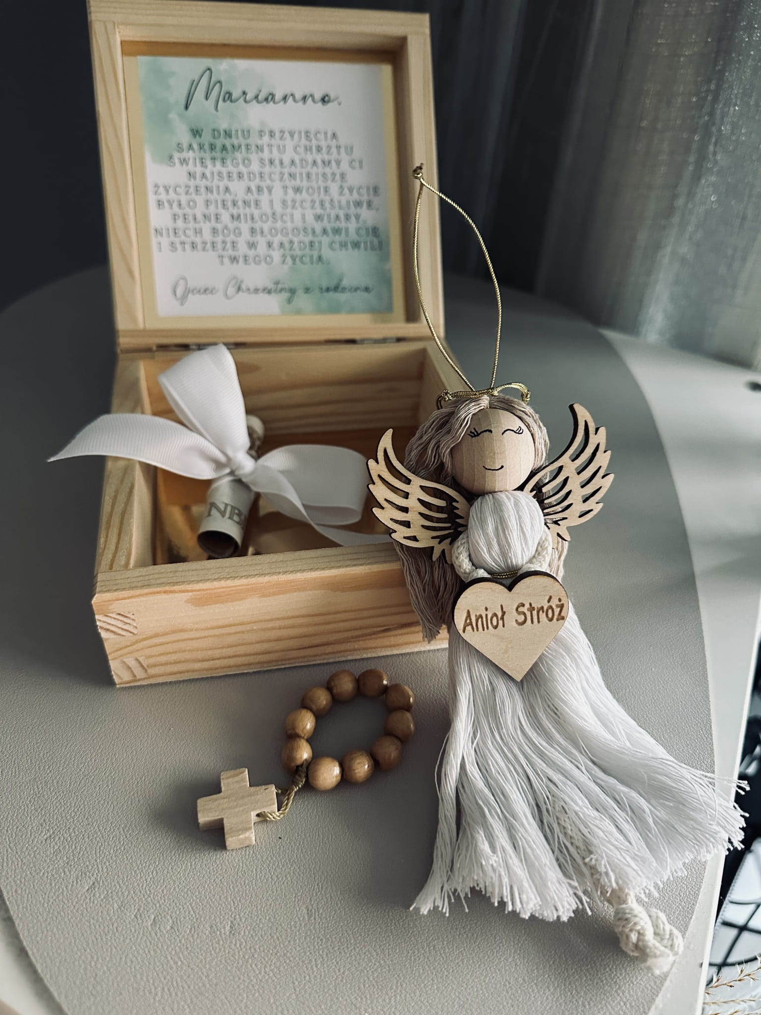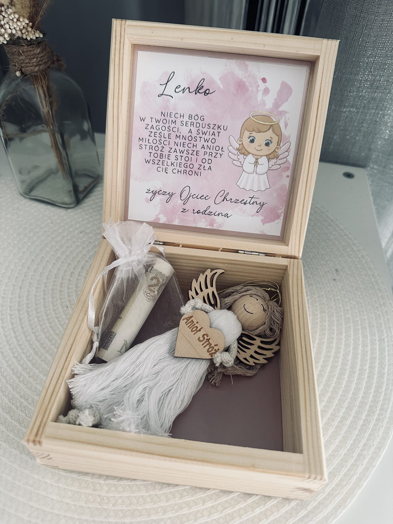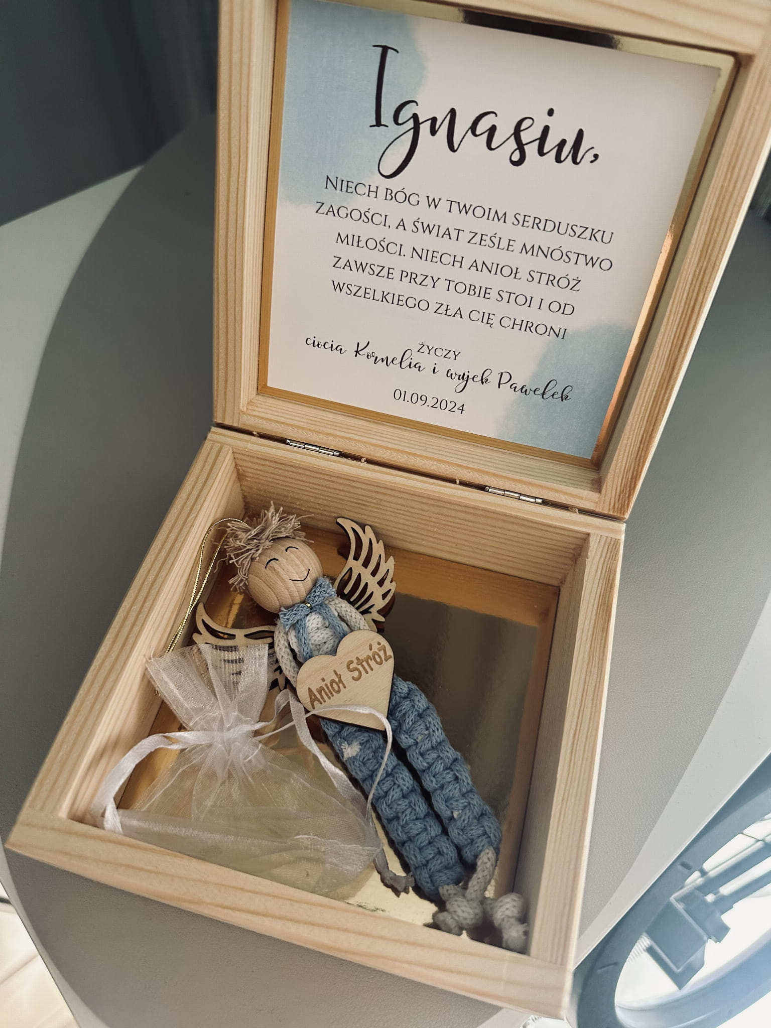 Pamiątka chrztu w postaci pięknego pudełka to wyjątkowy prezent, który ma na celu przechowywanie i chronienie drogocennych wspomnień związanych z tym ważnym wydarzeniem. Pudełko zostało starannie wykonane z wysokiej jakości materiałów, co nadaje mu trwałość i elegancję.