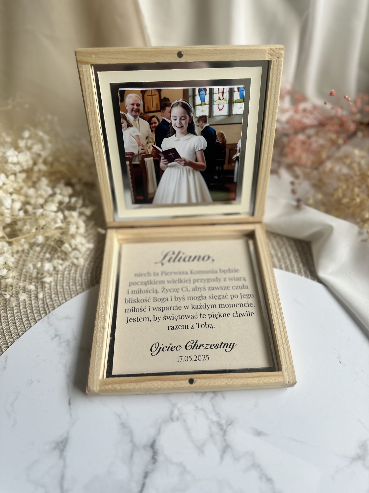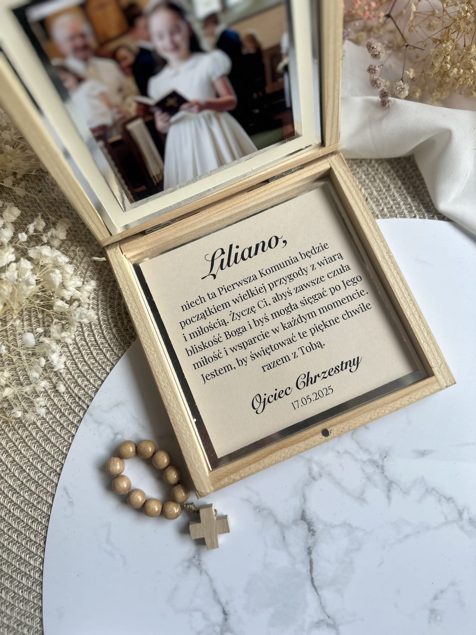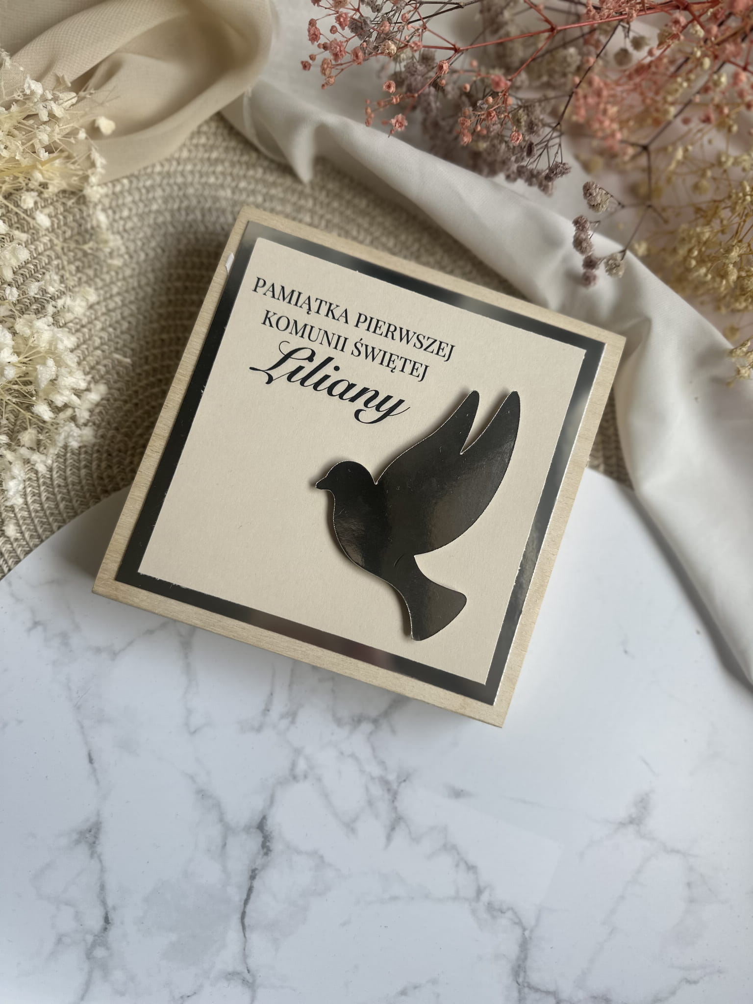 Pamiątka I Komunii Świętej - drewniane pudełko płaskie