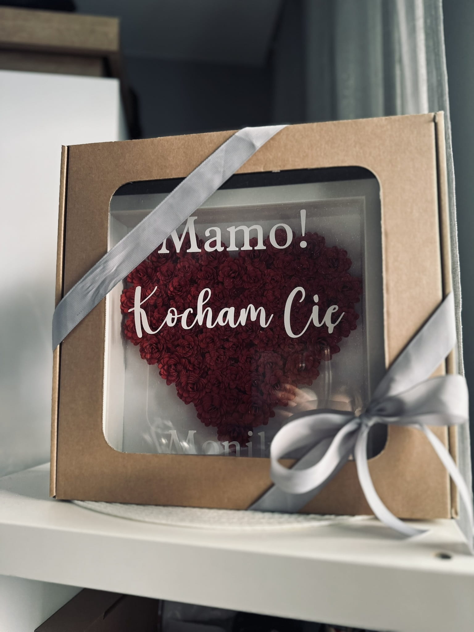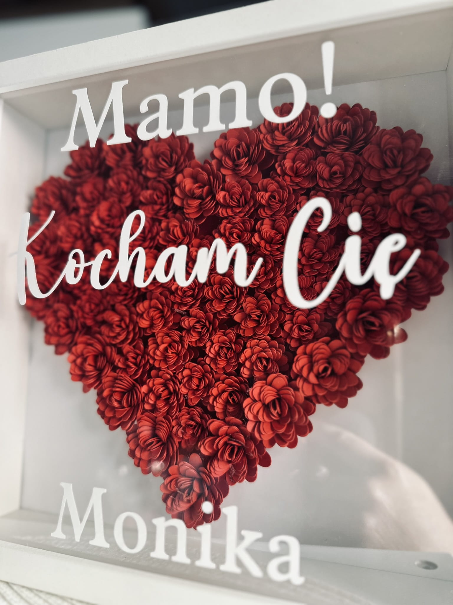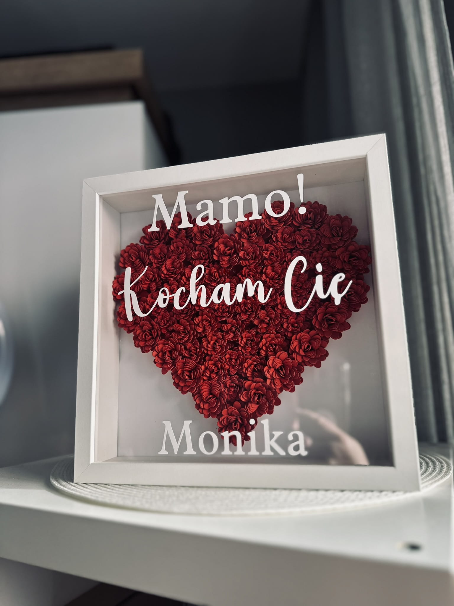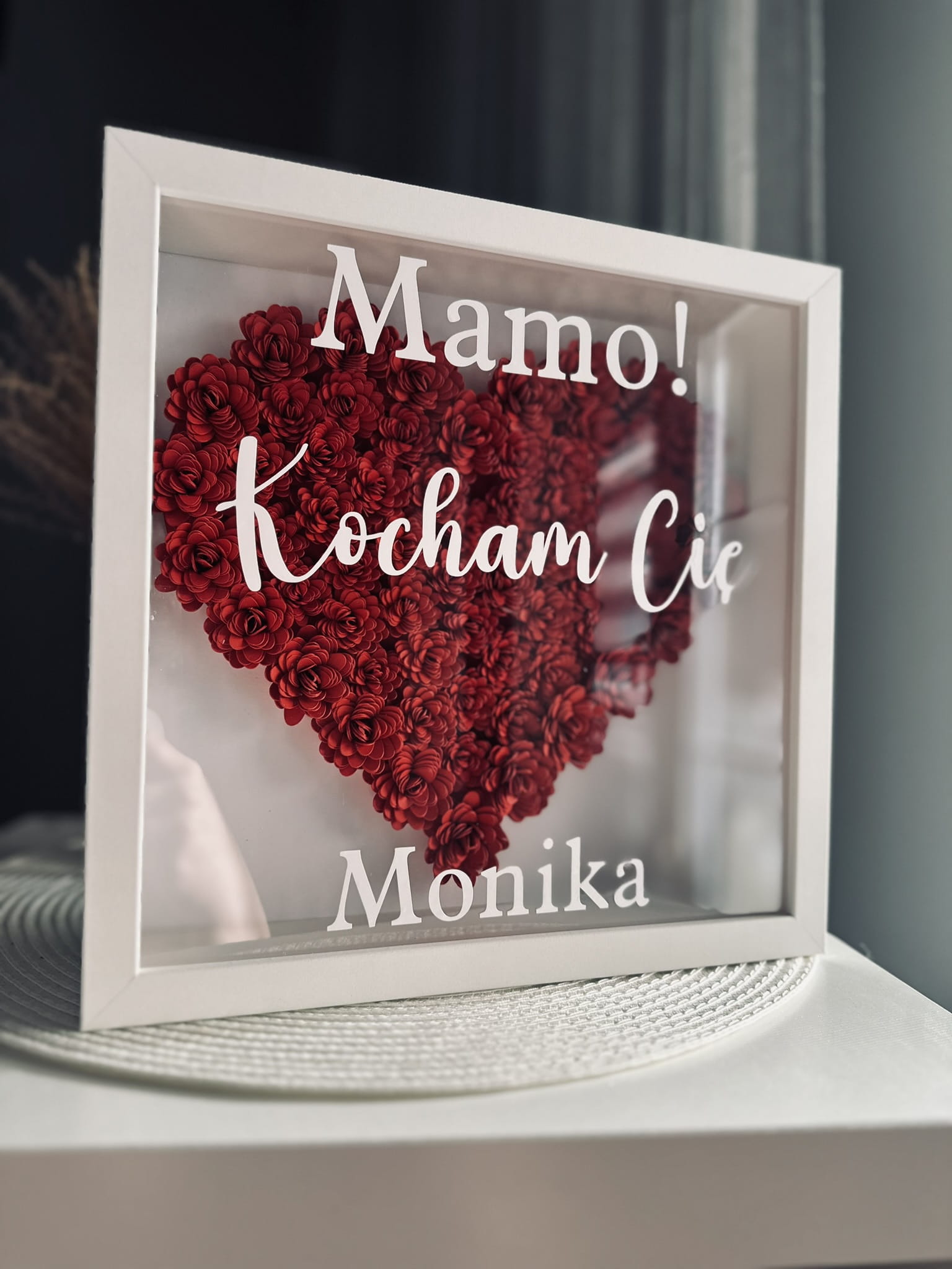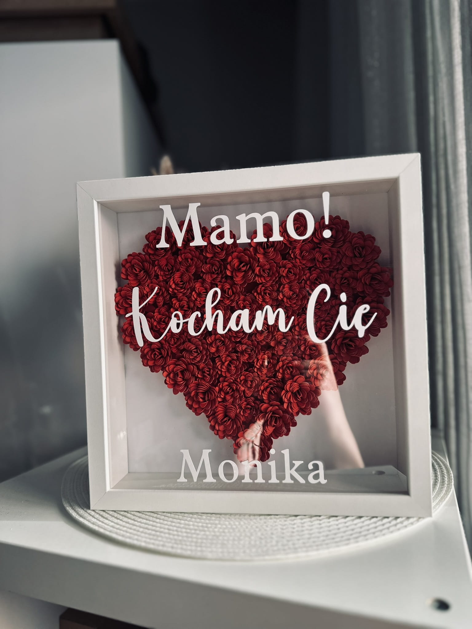 Personalizowana pamiątka z ręcznie robionymi kwiatami z efektem 3D.
