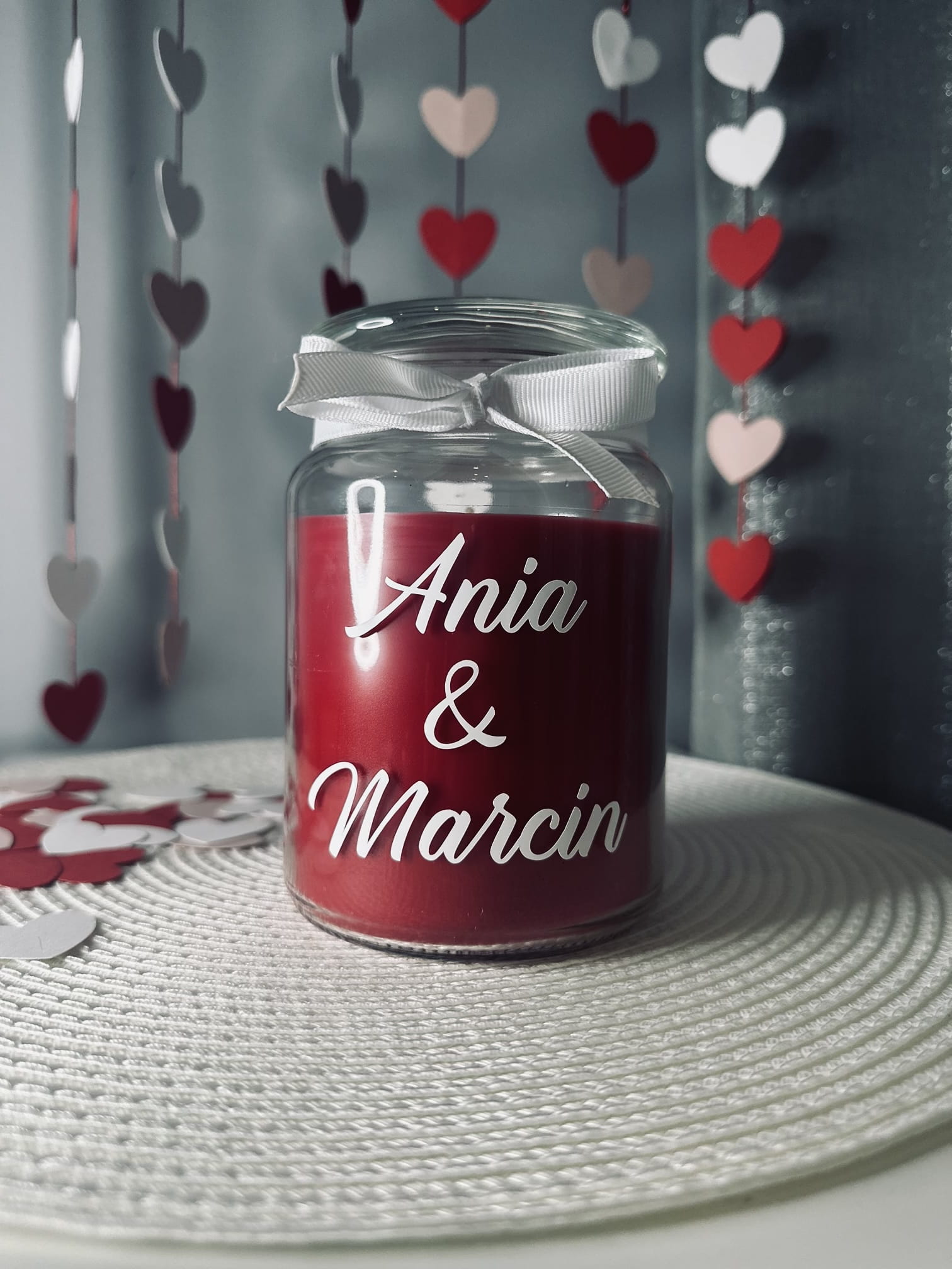 W polu tekstowym wpisz napis, który mam umieścić na świeczce, wybierz czcionkę, kolor napisu i kolor wstążki.