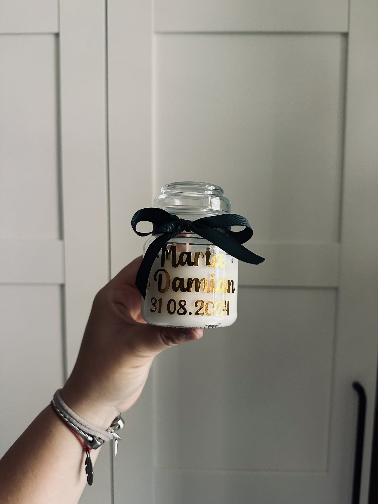 Świeczka z imionami Państwa Młodych i datą ślubu